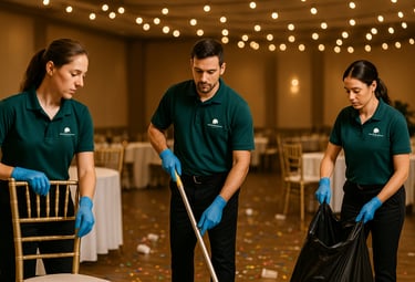 Dejamos tu espacio como nuevo tras el evento: retiro de residuos, limpieza profunda y puesta a punto inmediata.
